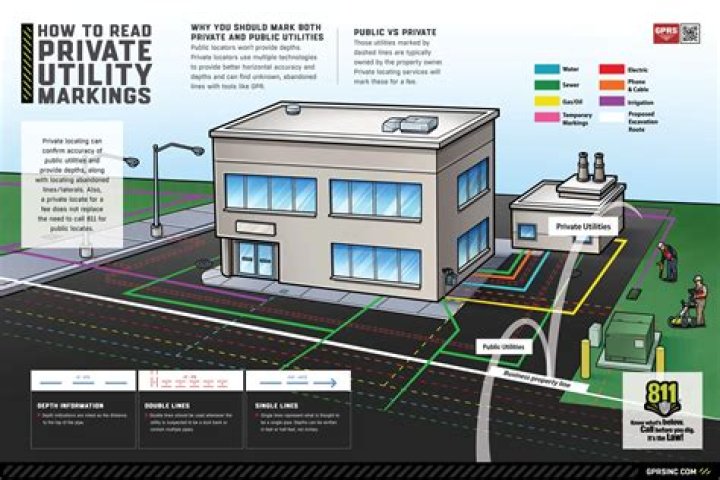You, or the company you've hired to do the work, should call 811 from any state. Call before excavating on any piece of commercial or residential land, including your own private property. It's a free service. Technicians will be sent to the site to locate public utilities using electromagnetic equipment.
