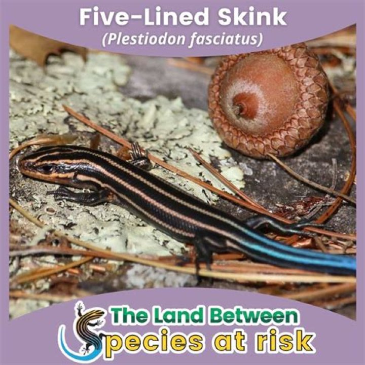 Five-lined skinks seek cover in rotting wood, rock crevices, vegetation or sawdust piles, or building foundations, remaining inactive during cold winter months (Harding 1997).