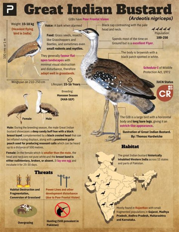 The Great Indian Bustard (GIB), the State bird of Rajasthan, is considered India's most critically endangered bird. It is considered the flagship grassland species, representing the health of the grassland ecology.