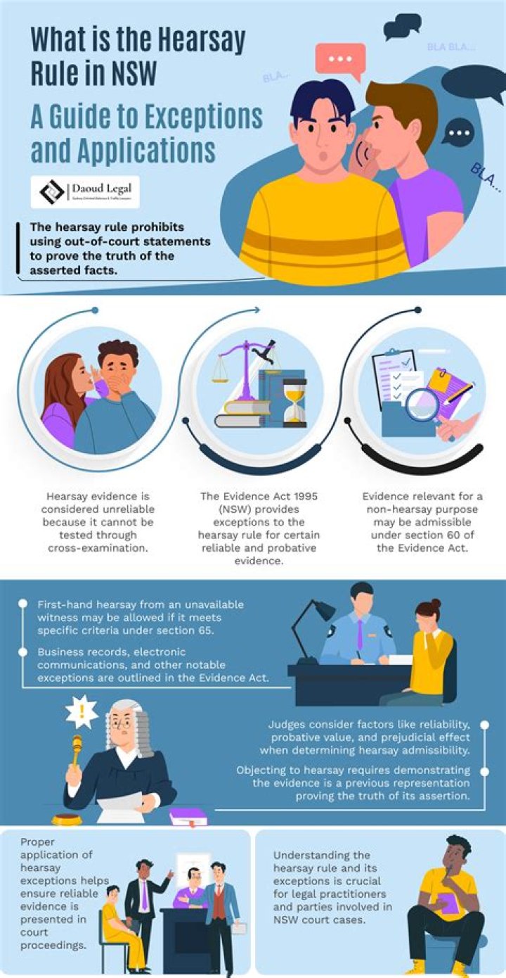 For example, if you are a witness in a trial, you cannot give the following evidence, "My mother told me she saw the accused at 3pm". This is evidence of a statement made out of court and is hearsay. For that evidence to be introduced, your mother would have to take the stand and describe what she saw herself.