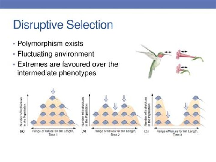 Disruptive selection is an evolutionary force that drives a population apart. The disruptive selection will cause organsisms with intermediate traits to reproduce less, and will allow those organisms with extreme traits to reproduce more. This causes the alleles for the extreme traits to increase in frequency.