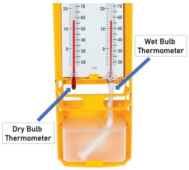 A dry thermometer has the bulb exposed to air. A wet thermometer has the bulb covered with a muslin cloth which is dipped in water. It is used to measure the relative humidity of temperature. When air is saturated, evaporation stops and the two bulbs show the same reading.