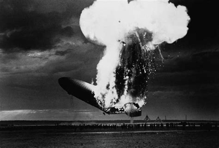 The Hindenburg was minutes from landing when a hydrogen gas leak was met with static electricity, igniting the airship, which was about 175 feet in the air. Within 34 seconds, it crashed in a blaze, killing 13 passengers, 22 crew members and one man on the ground.