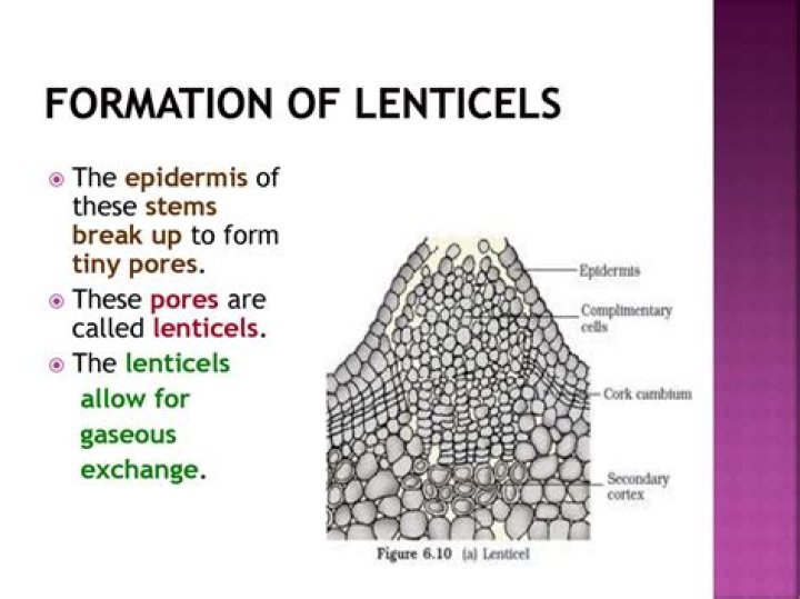 Lenticels are the pores of external plant tissue that give an immediate trade of gases between inner plant tissues and the environment. The bark is regularly impermeable and the trade or arrival of inside gases would be inconceivable without the plant's lenticels.