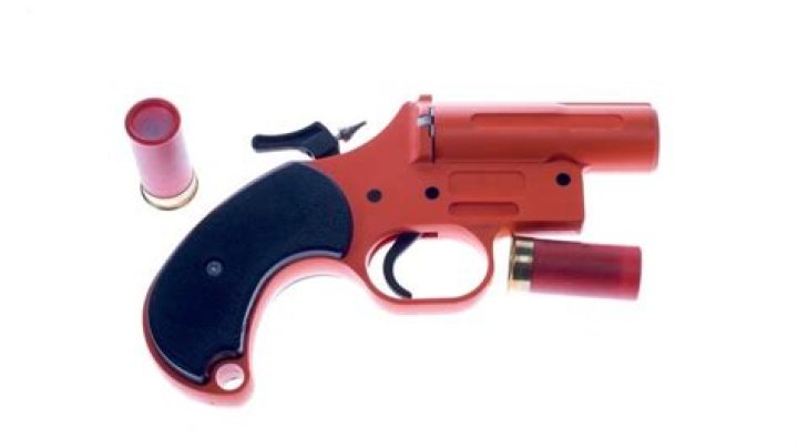 A flare gun, also known as a Very pistol or signal pistol, is a large-bore handgun that discharges flares. The flare gun is typically used to produce a distress signal.