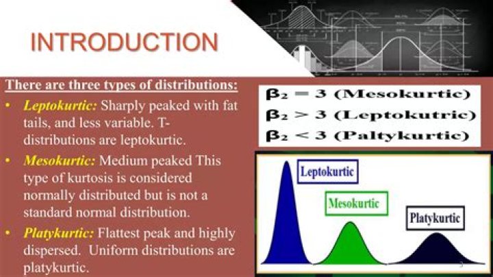 Mesokurtic distributions have the same kurtosis as that of the normal distribution, or normal curve, also known as a bell curve. In contrast, a leptokurtic distribution has fatter tails. This means that the probability of extreme events is greater than that implied by the normal curve.