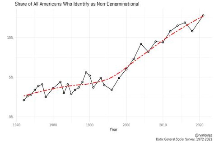 Well, for example, most of the top 100 largest churches in the United States are now nondenominational. According a recent study by the Pew Research Center, the share of Southern Baptists in the U.S. population fell by 1.4% in the past year seven years.