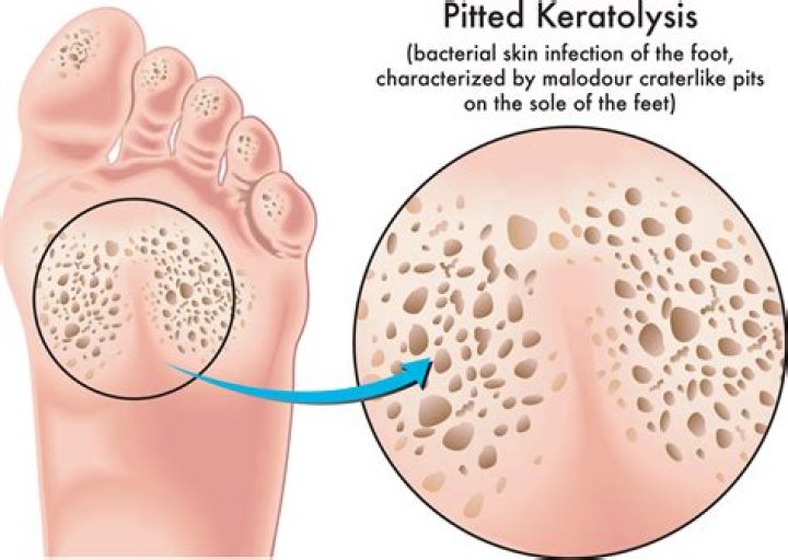 Pitted keratolysis is a bacterial infection of the skin. It can affect the palms of the hands and, more commonly, the soles of the feet, particularly the weight-bearing areas. This infection causes small depressions, or pits, in the top layer of the skin. It can also lead to a bad smell.