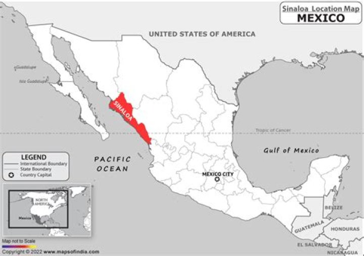 Sinaloa, estado (state), northwestern Mexico. It is bounded by the Gulf of California (also called the Sea of Cortez) and the Pacific Ocean to the west and by the states of Sonora to the north, Chihuahua and Durango to the east, and Nayarit to the south. Its capital city is Culiacán - Wikipedia