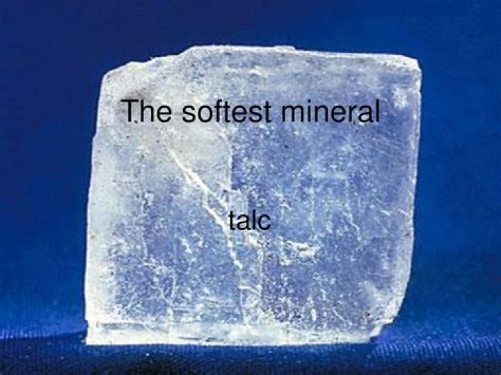 According to the Mohs scale, talc, also known as soapstone, is the softest mineral; it is composed of a stack of weakly connected sheets that tend to slip apart under pressure.