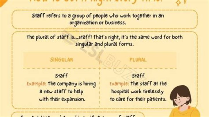 Usage Staff may be used as a plural noun to mean the members of a staff. The company employs 20 full-time staff. The staff are at a meeting.