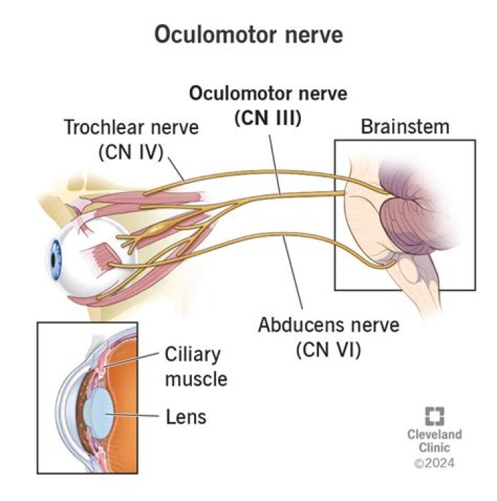 The oculomotor nerve is the third cranial nerve (CN III). It allows movement of the eye muscles, constriction of the pupil, focusing the eyes and the position of the upper eyelid. Cranial nerve III works with other cranial nerves to control eye movements and support sensory functioning.