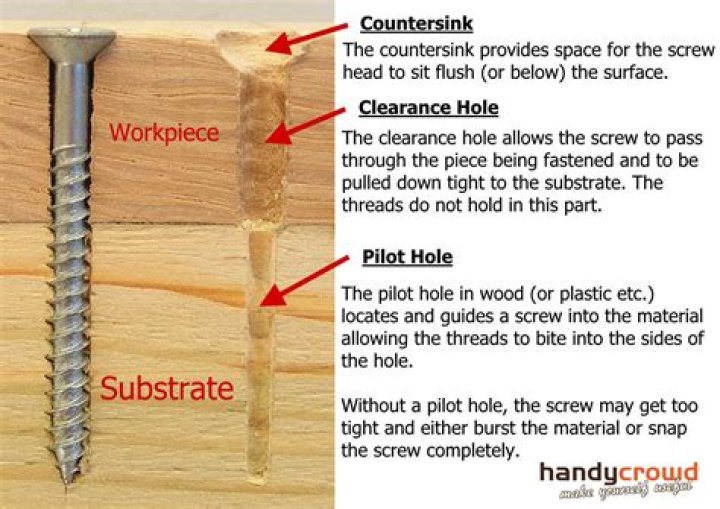 This pilot hole should be deep enough so that it penetrates the wood a distance of about one-half to two-thirds of the screw's threaded length. If you are planning to countersink the screw head, a third hole, equal to the diameter of the head, will be needed at the surface.
