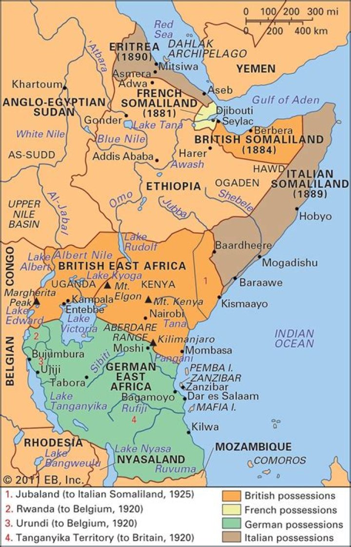 Tanganyika was colonized first by Germans (1880s until 1919) then the British (1919 to 1961). It served as a military outpost during World War II and provided financial help as well as munitions.