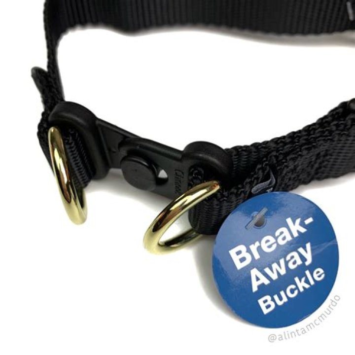 The breakaway feature helps to safeguard against strangulation accidents. Dogs can still be walked on the collar without it snapping open by clipping the leash to both metal rings, located on either side of the breakaway feature. Pros: If the collar gets caught, it opens, reducing the risk of choking.