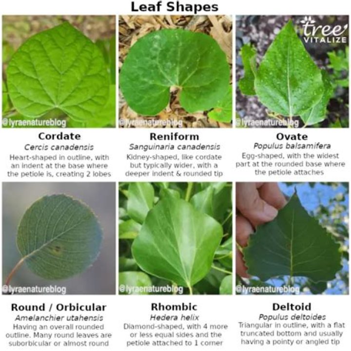 Reniform: kidney shaped; example. Geranium (Pelargonium sp.). Cordate: heart shaped: example. Redbud (Ceris canadensis), cyclamen, (C.