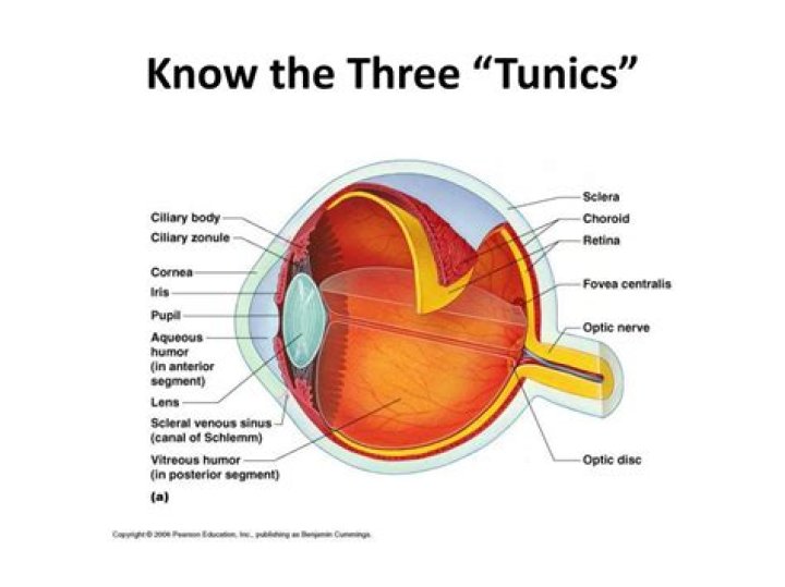The eye is made up of three layers: the outer layer called the fibrous tunic, which consists of the sclera and the cornea; the middle layer responsible for nourishment, called the vascular tunic, which consists of the iris, the choroid, and the ciliary body; and the inner layer of photoreceptors and neurons called the ...