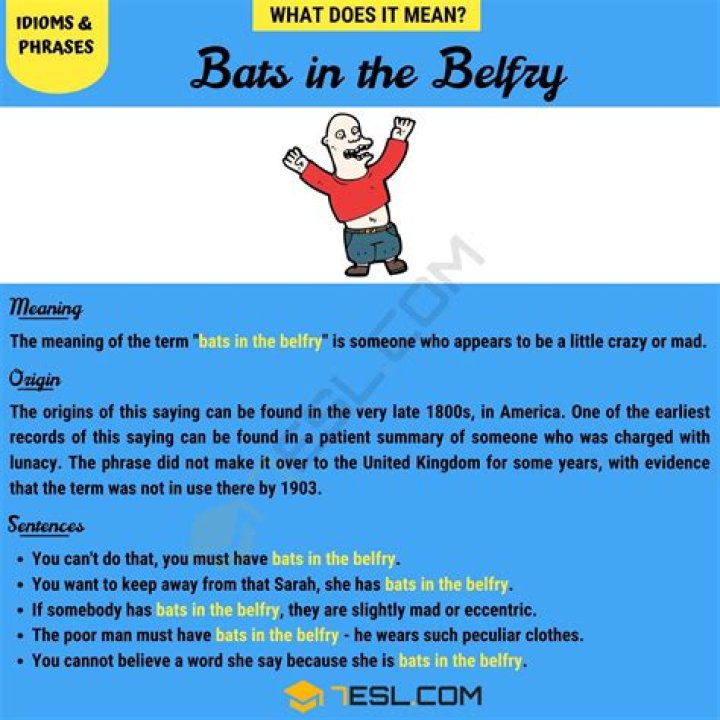29 related questions foundDo you have bats in the belfry?