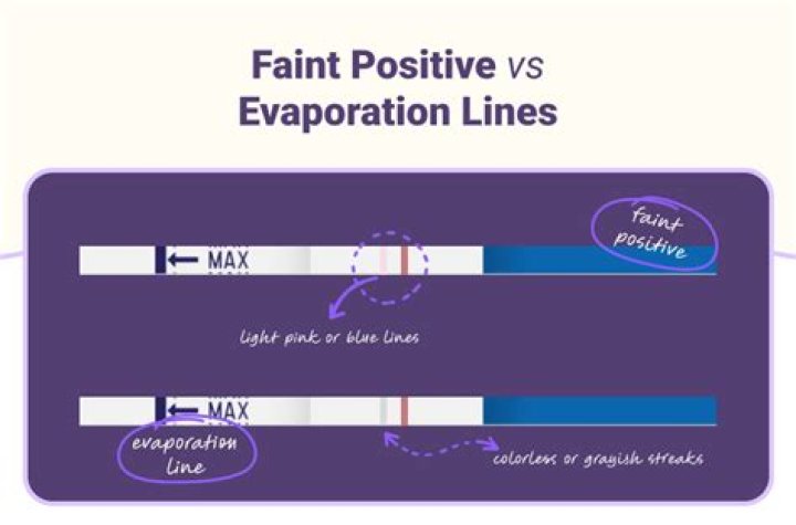 An evaporation line is a slight streak that appears where the positive line on a pregnancy test should be. Evaporation lines are colorless streaks, not faint lines. They typically appear if a person waits for longer than the suggested time to read the test result.