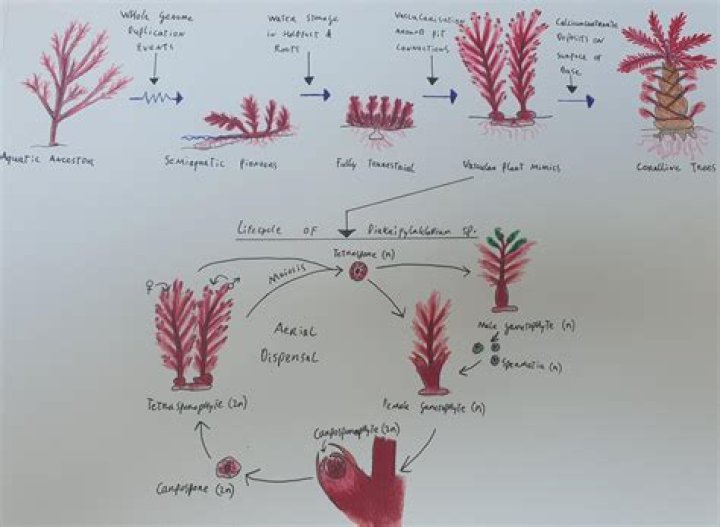 A complex series of fusions and developments follow as the diploid zygote develops to become the carposporophyte, this is a separate phase of the life-cycle and is entirely parasitic on the female, it is surrounded by the haploid pericarp of the parent female plant.