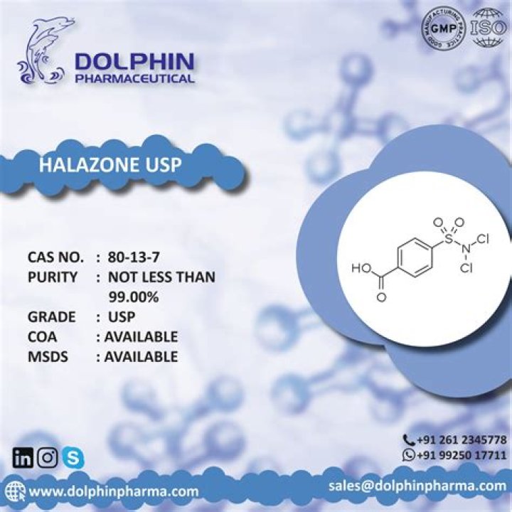 Halazone Tablets are a powerful purifier of drinking water in small quantities. It is used worldwide in army, navies, military, households, schools, hospitals for purification of drinking water.