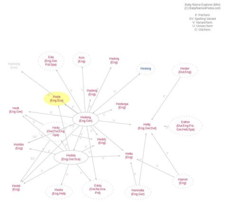 as a girls' name is of Old German derivation, and the name Heda means "contention and strife; delightful, sweet; my echo". Heda is a version of Hedda (Old German): anglicized variant of Hedwig. Heda is also a form of Hedy (Greek, Hebrew).