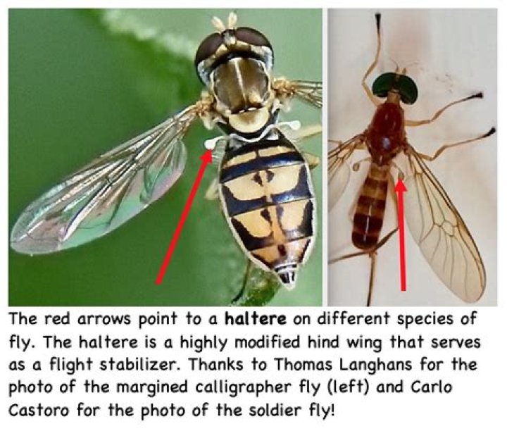 All fly species have shortened hindwings called halteres. These don't generate useful lift, but are used as sensory organs for balance to help stabilise the insect while in flight. A group of flies known as Calyptratae, which includes houseflies and blowflies, rhythmically move these wings when standing.