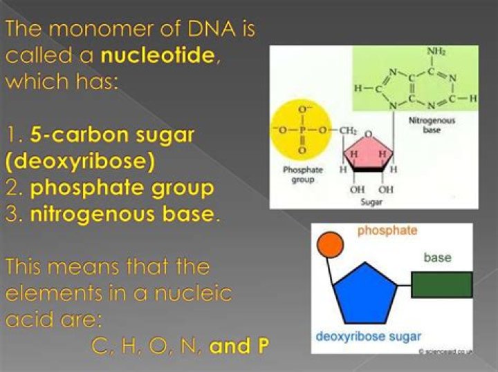 Nucleic acids are giant biomolecules made of monomers called nucleotides. Nucleotides have three components: pentose sugar (5-carbon sugar), phosphate group, and nitrogenous base.