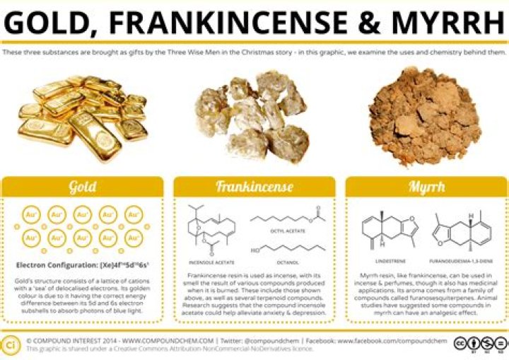 As per the Biblical tale, as recounted in Matthew 2:1-12, an infant Jesus of Nazareth was visited in Bethlehem on the eve of his birth by Magi bearing gifts of gold, frankincense and myrrh. ... Frankincense was often burned as an incense, while myrrh made its way into medicine and perfume.