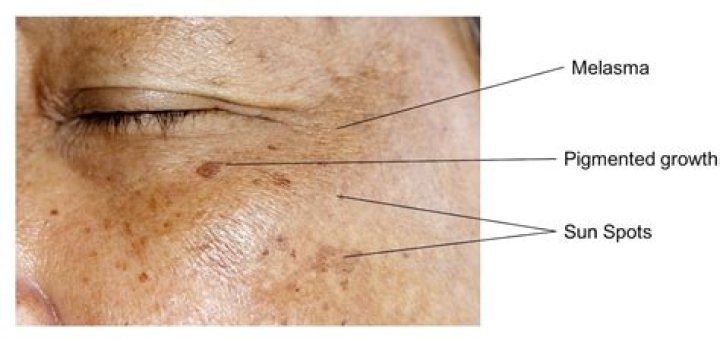 Melasma is a common skin condition that affects the face and causes patchy, brown, tan or blue-gray spots on the face. It is one of several skin conditions that result in patches of discolored skin. Most people with melasma get dark patches on their cheeks, chin, nose bridge, forehead, and above the upper lip.