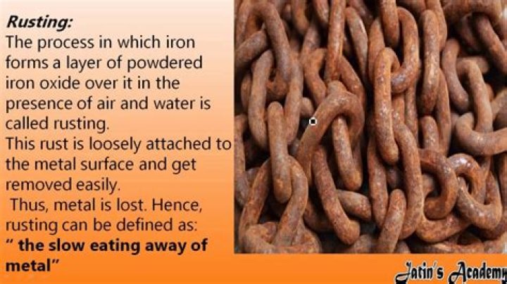 Rusting is an oxidation reaction. The iron reacts with water and oxygen to form hydrated iron(III) oxide, which we see as rust. This prevents the metal below from coming into contact with air (containing oxygen). ...