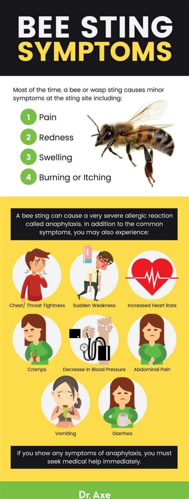 For most people, a bee sting is just a nuisance. You may experience temporary sharp pain, swelling, redness, warmth, and itching at the sting site, but no serious complications. If you're allergic to bees, or you get stung multiple times, bee stings can be more problematic. They can even be life-threatening.