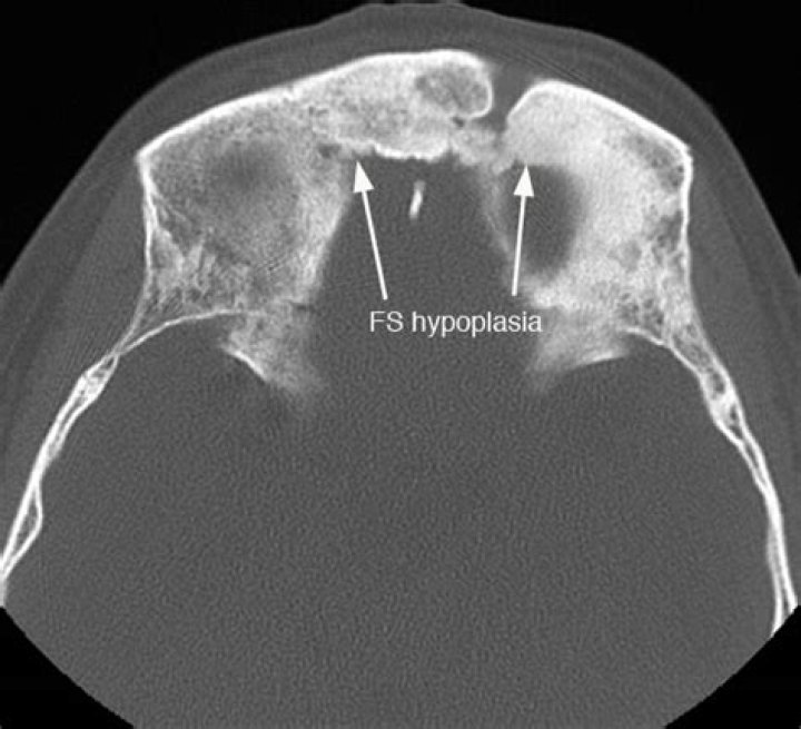 Hypoplasia or underdevelopment of the frontal sinuses is an unusual phenomenon. Computed tomography (CT) scans must be performed to map sinus anatomy and to assess the extent of the pathologic abnormality so that anatomical variants can be noted by the surgeon and complications can thus be avoided.