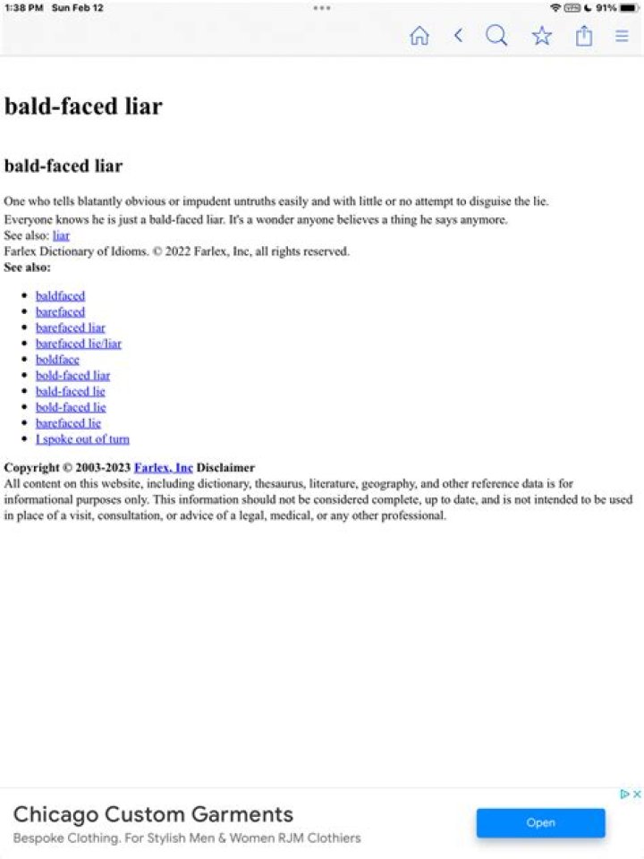There is often confusion about which word, bald or bold, is the correct one in this particular idiom. But fret no more, we now have the definitive answer: They're both acceptable. Most sources agree that the original expression, coined in the late 1600s, was actually barefaced lie.