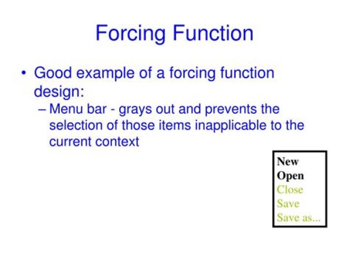 Forcing functions, also known as behavior-shaping constraints, engage our brains so that we think about making better decisions. In product design, these constraints often protect our physical safety. ... Forcing functions can be also used as a productivity function for project management.