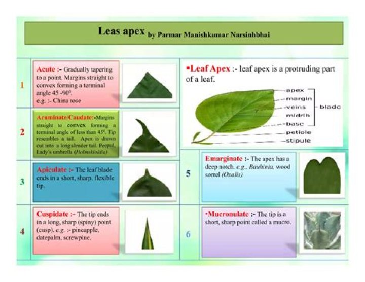 The leaf apex is a protruding part of a leaf where water droplets accumulate, and droplet separation occurs during drainage. ... (A) The statistical plot of the leaf apex angles, α, among different species of leaves in alphabetical order. According to the leaf apex angle, leaf apex can be classified into obtuse and acute.