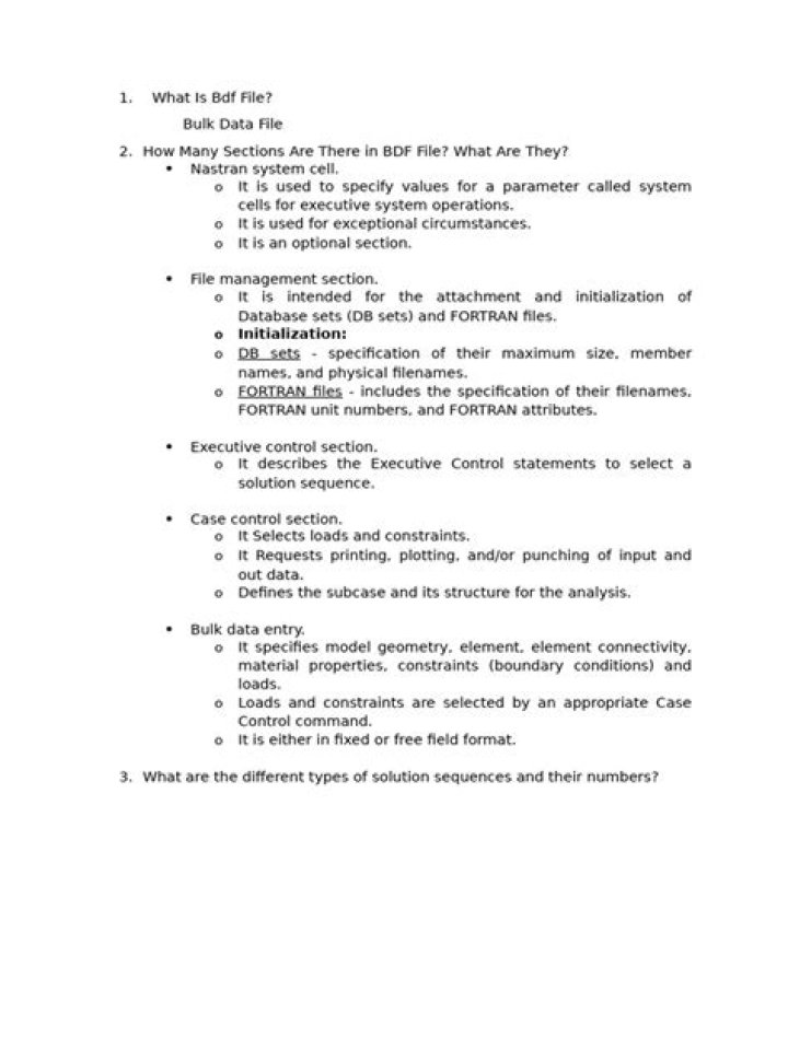 Question: How do I make sense of the MSC Nastran . bdf or . dat file is the definition of the entire finite element model, node locations, element connections, loads, etc. ...