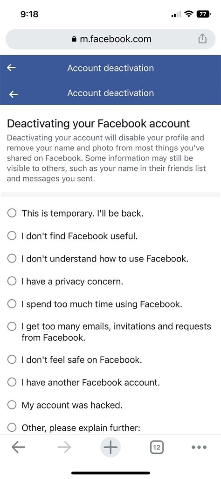 Why would someone deactivate their Facebook account?