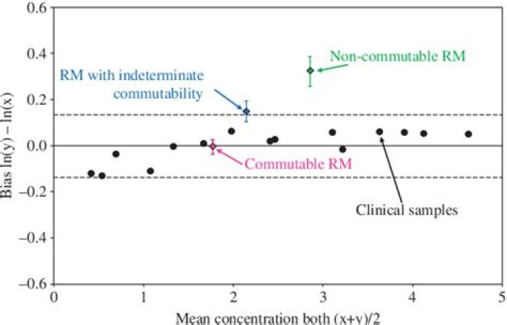 Commutability is required when a reference material will be used as a common calibrator for clinical laboratory measurement procedures or will be used in an external quality assessment (proficiency testing) program to evaluate the agreement among measurement procedures for results from patient samples (3).