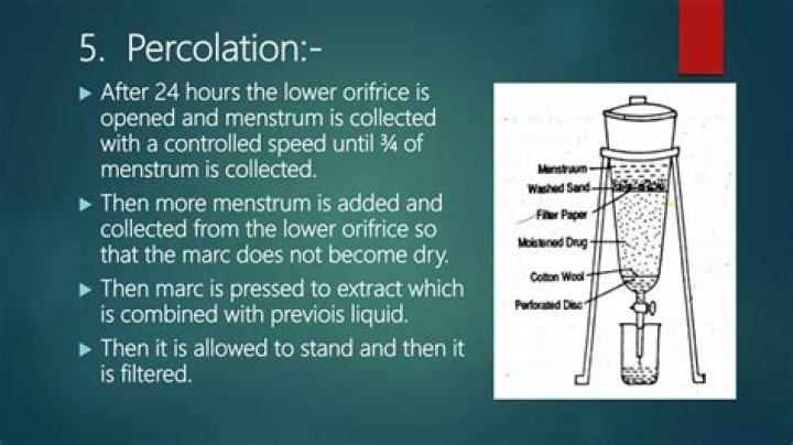 Percolation is an extractive procedure that is conducted at room temperature and that literally means “pass a liquid through a solid material drop by drop.”