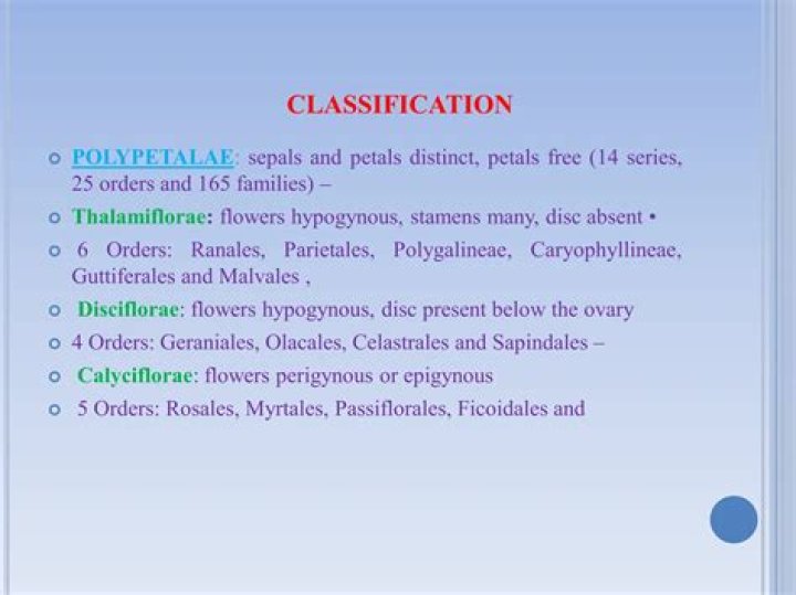It is divided into three subclasses -- Polypetalae, Gamopetalae and monochlamydae Scanned with CamScanner Page 2 ca. polypetalae -The flower contain distinct non essential whorls calyx and olla in the corolla petals are free. This subclass includes three series Thalamiflorae, Disciflorae and Calyciflorae.