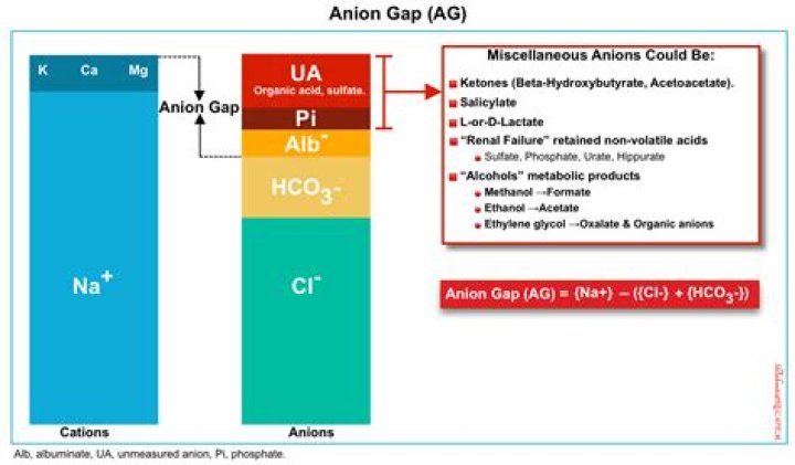 The anion gap (AG) is usually a clue to a variety of metabolic acidoses and the presence of mixed acid-base disorders. When these disorders develop, AG is typi- cally elevated or within the normal range. Less often, the AG is reduced into the low range or even becomes negative.