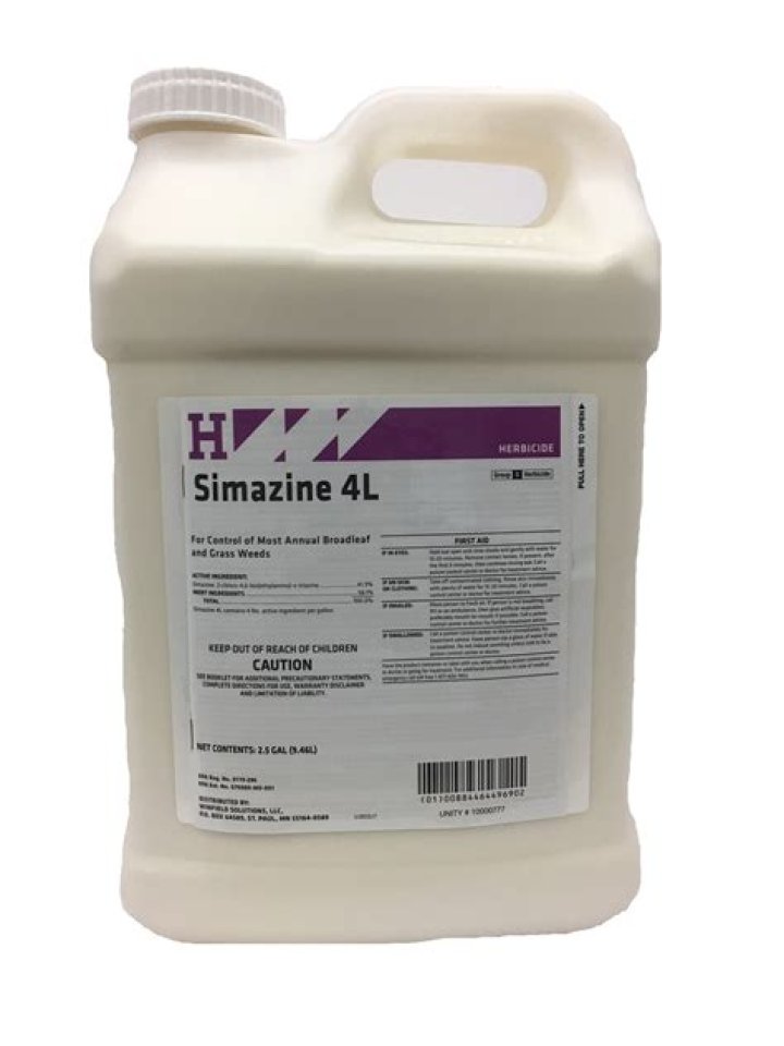 SIMAZINE 4L is a herbicide that should be applied before weeds emerge or following removal of weed growth. It controls a wide variety of annual broad leaf and grass weeds when used at selective rates in agricultural crops and ornamental plantings.