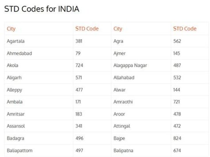 STD codes are either 4, 3 or 2 digits. For example, all metropolitan cities have a 2-digit area/STD code and an 8-digit phone number. At present, 2-digit STD codes (also known as area or trunk codes) are 11, 20, 22, 33, 40, 44, 79, 80. First digit in subscriber number will not be 0, 1, 7, 8 and 9.