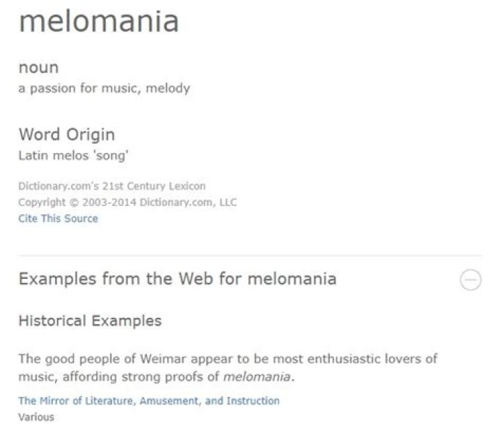 What is the definition of melomania?