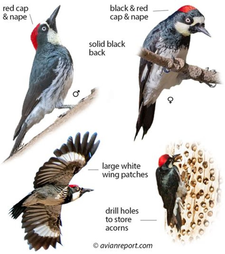 Acorns typically are stored in holes drilled into a single tree, called a granary tree. One granary tree may have up to 50,000 holes in it, each of which is filled with an acorn in autumn. ... Occasionally the woodpecker will put acorns into places where it cannot get them out.