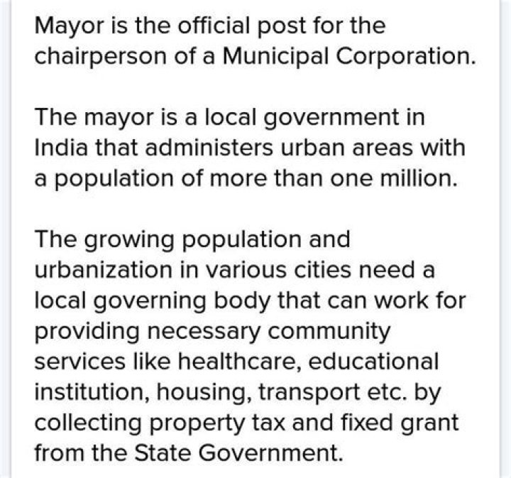 The Mayor is the titular head of the Municipal Corporation and presides over the meetings of the corporation.