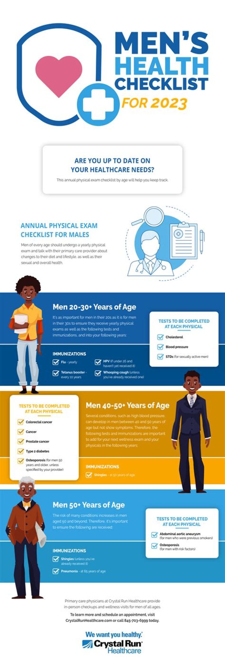 Depending on your age, sex, and medical history, you may need to be screened (tested) for things like:- Certain types of cancer.