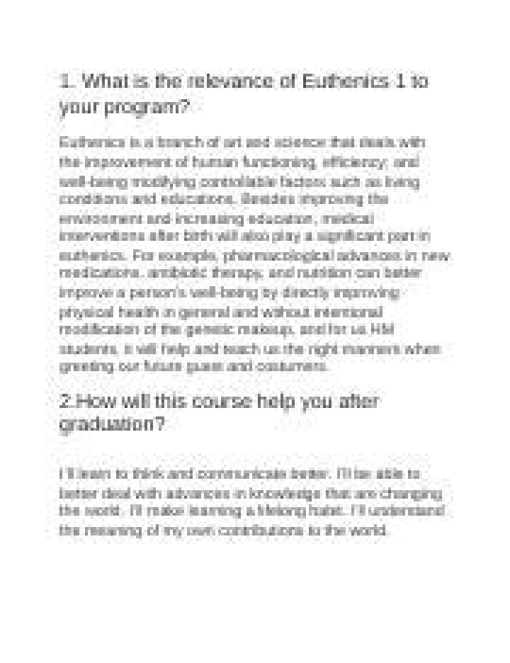 What is the relevance of euthenics 1 to your program?