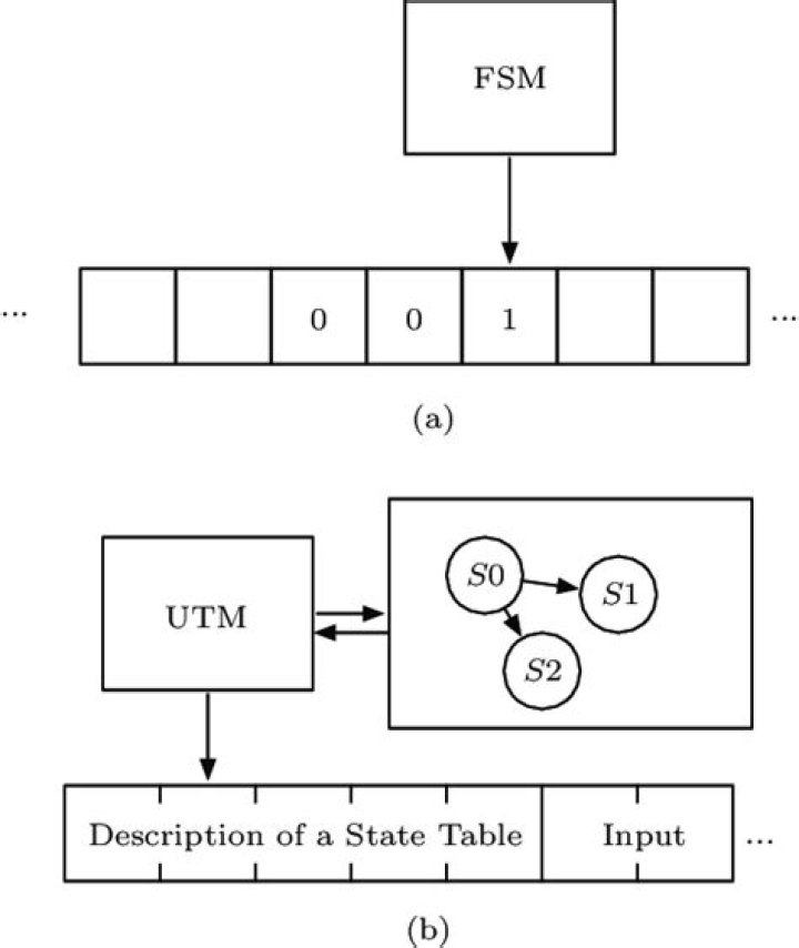 In computer science, a universal Turing machine is a Turing machine that simulates an arbitrary Turing machine on arbitrary input. The universal machine essentially achieves this by reading both the description of the machine to be simulated as well as the input to that machine from its own tape.